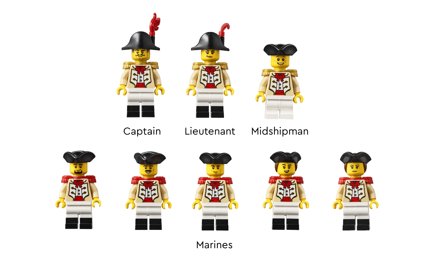 The 10210 Imperial Flagship from 2010 was a Redcoat ship and because the Camilla torsos work much better for Redcoats.