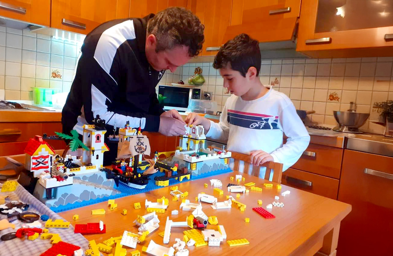 Brian Steffensen Vestergaard (Piraten) and son with LEGO Ideas submission, “The Fortress“