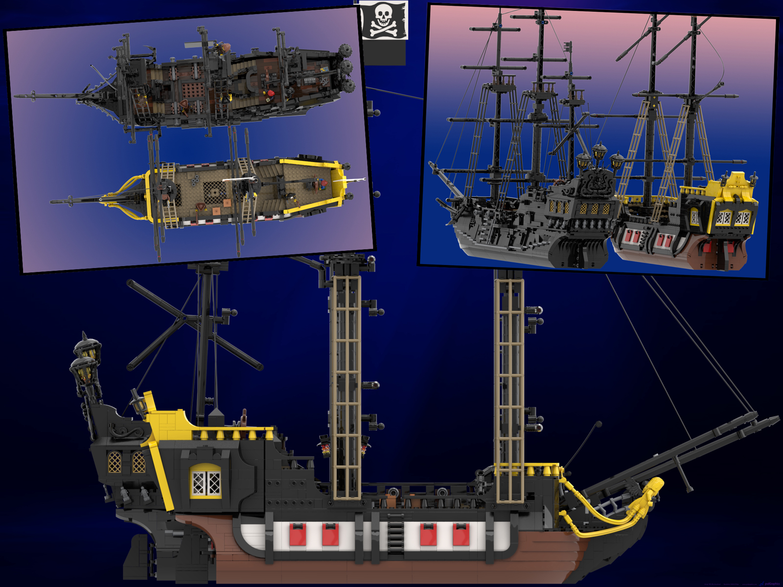 The design was heavily based on the real Black Pearl from the Pirates of the Caribbean movie series, which premiered in the theatres back in 2003 and thus making the release of this MOC (in 2023) a 20th year anniversary celebration of the highly successful and worldwide beloved franchise.