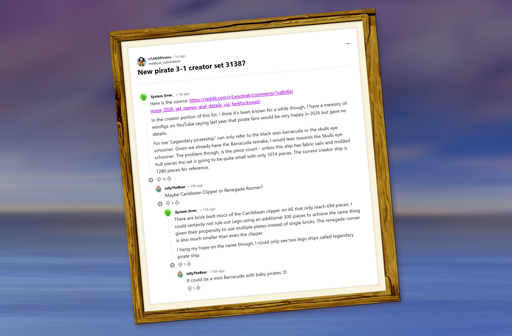 What inspired medicus_vulneratum to suddenly post about the alleged LEGO Creator Pirate ship be unknown, but fellow Reddit user, _System_Error_ quickly retrieved the source of the .